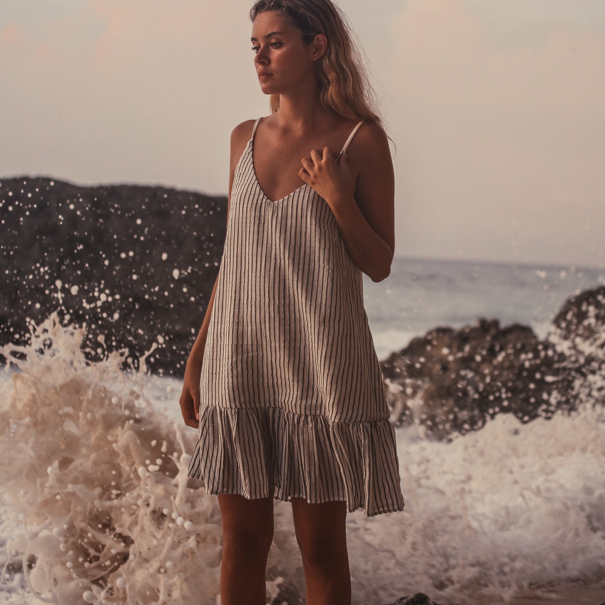 Puglia Stripes Mini Dress - Oatmeal