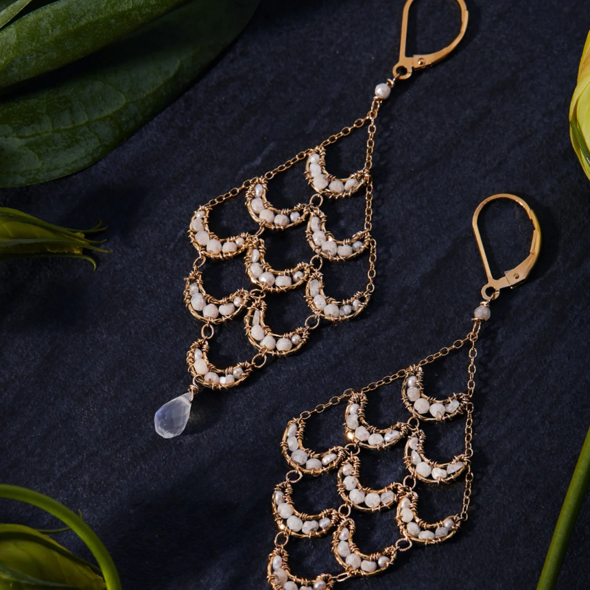Pearl Crescent Bridal Chandelier Earrings
