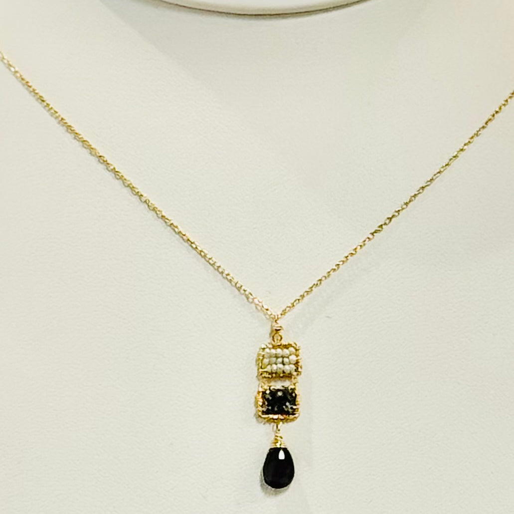 Black Spinel, Olive Ethiopian Opal, Sapphire, Natural Blue Zircon, Pearl & Turquoise Necklace #4244-C-B-BS/OO/BS-G
