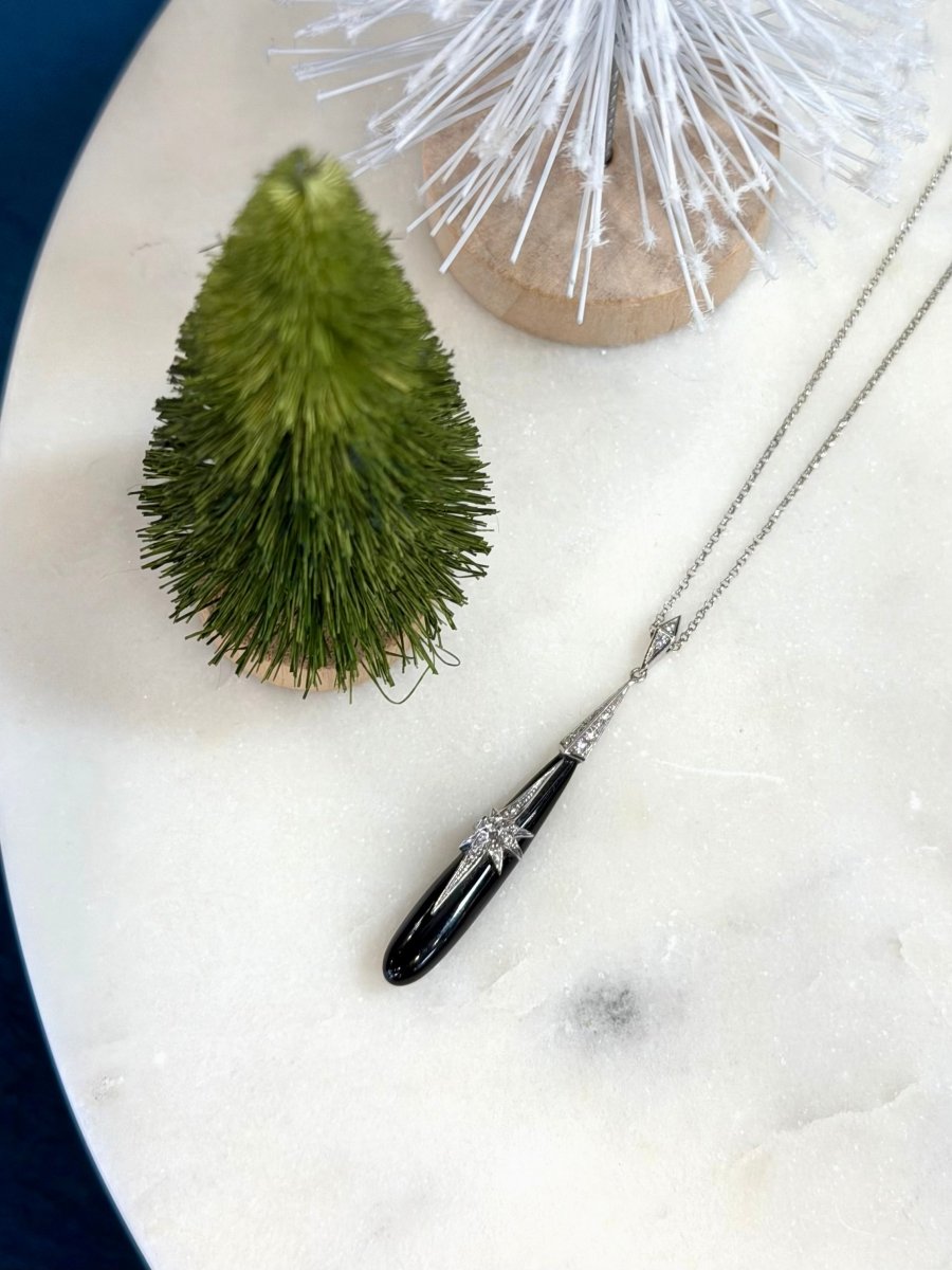 14K White Gold Black Onyx Necklace w/DiamondsZiabird