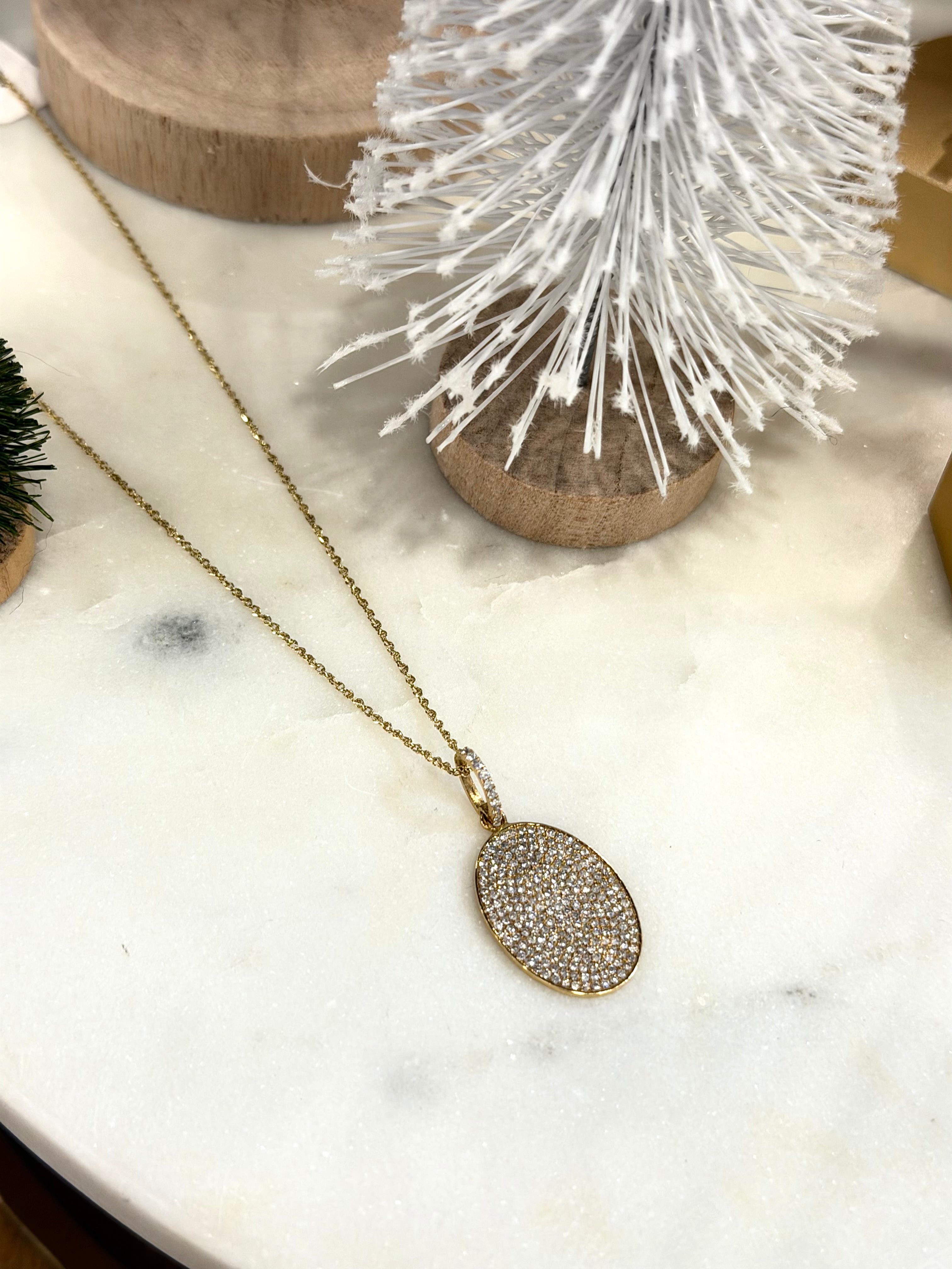18K Yellow Gold Oval Pave Diamond NecklaceZiabirdNECKLACES