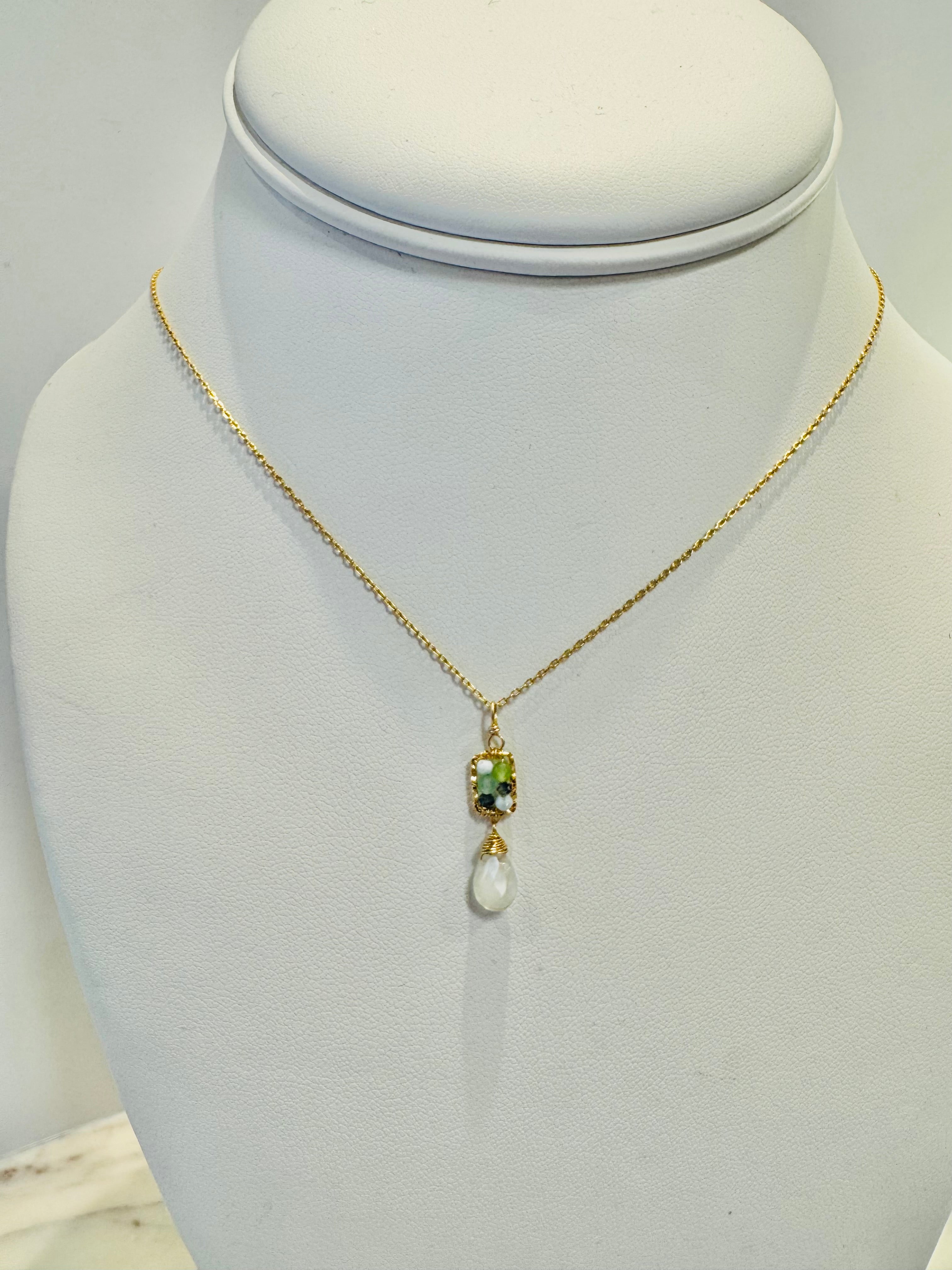 Chrysoprase, Austraian Sapphire & Larimar with White Moonstone Necklace