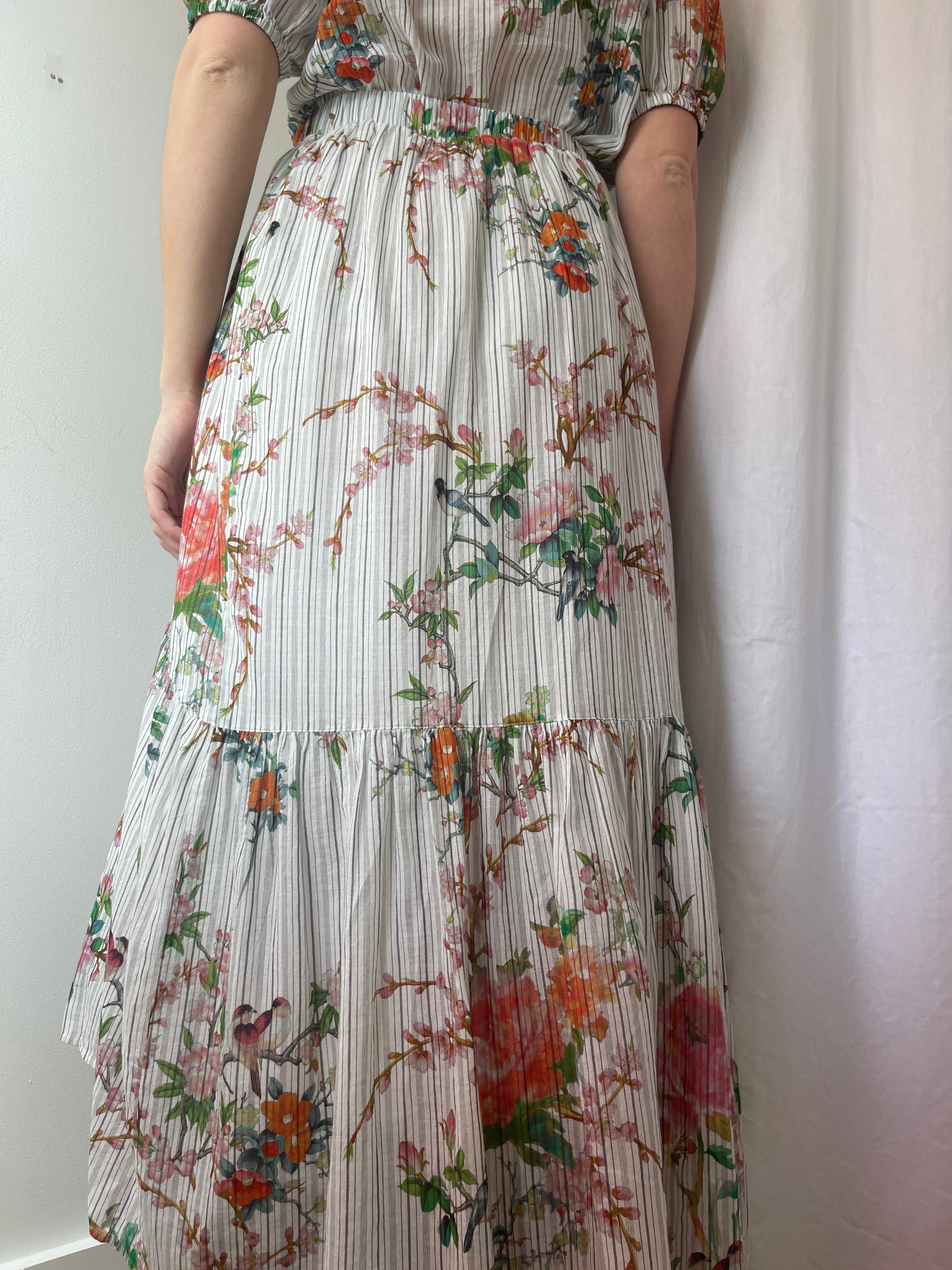 • Johnny Was "Colmar Lisbon" striped floral-print skirt