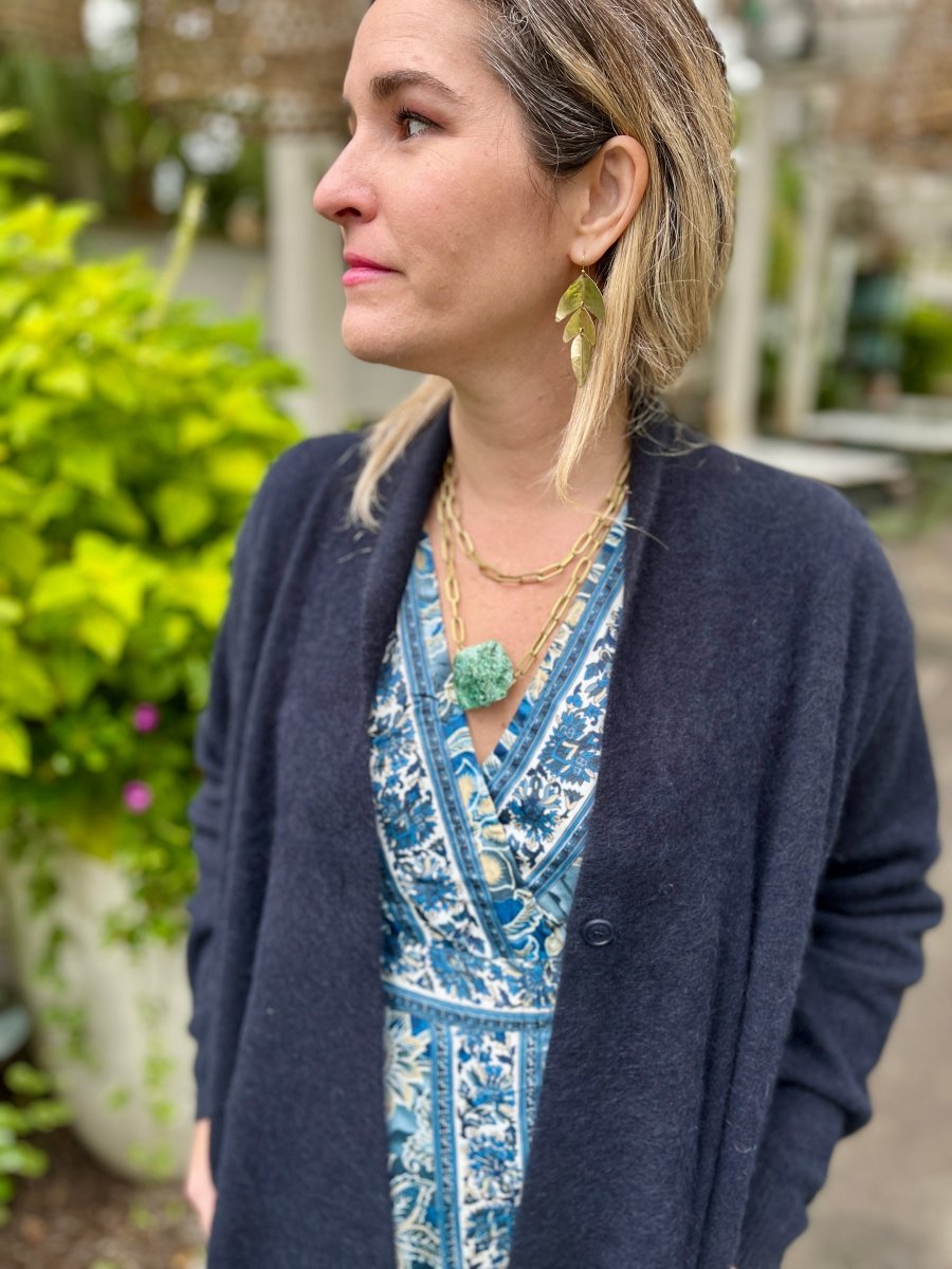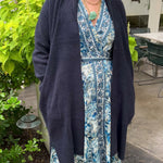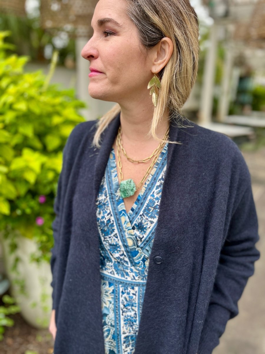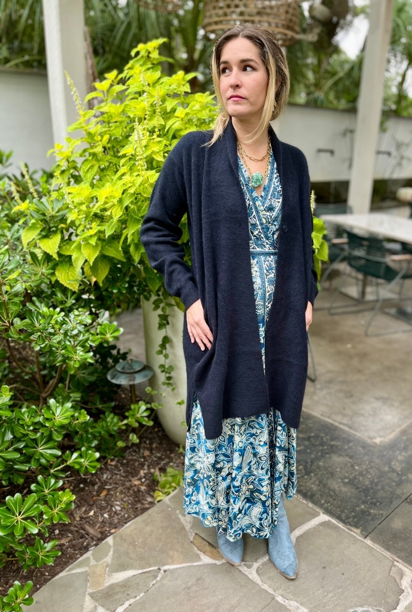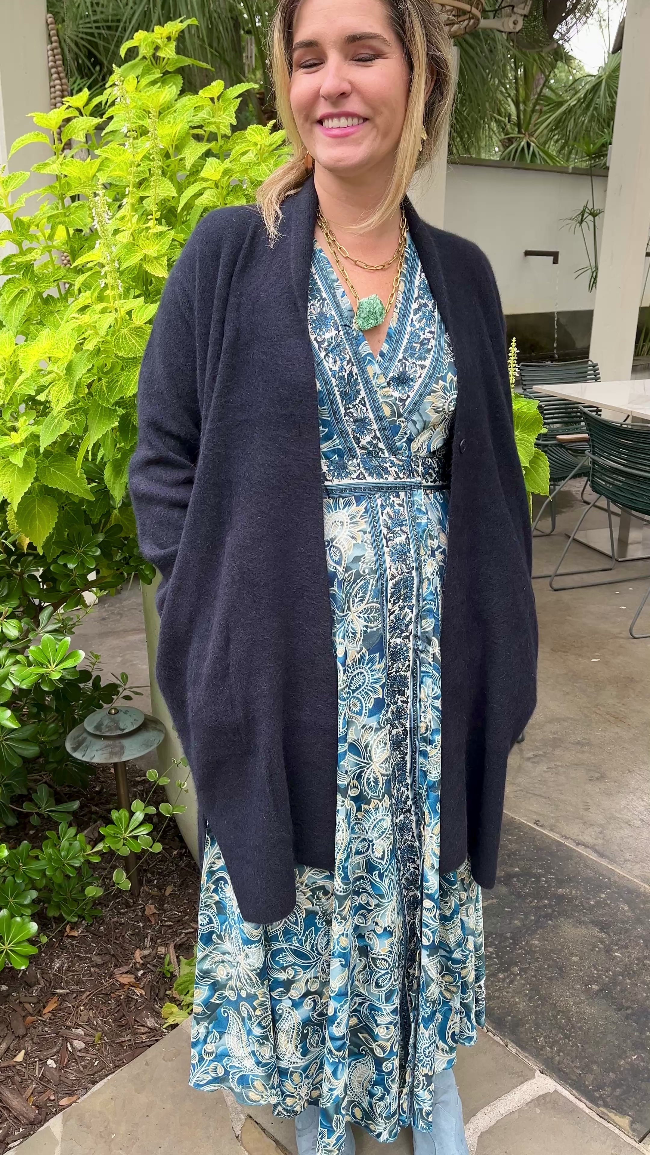 Tailored with a refined, architectural line, this dress moves effortlessly between structure and flow. The deep V neckline, long sleeves, and fluid drape create a silhouette that feels both modern and timeless. Minimalist yet dramatic, it’s a piece that commands quiet attention—whether styled solo with sleek boots or layered with bold jewelry for evening.