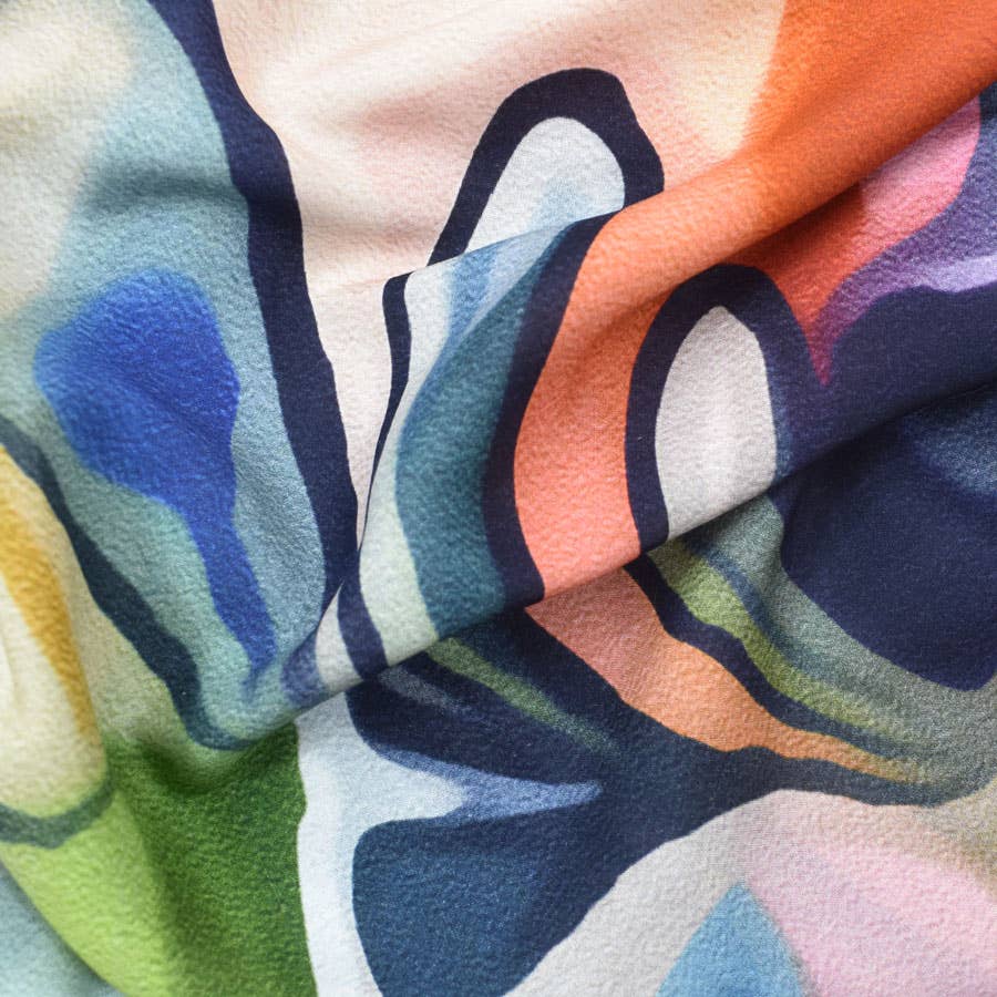 Perfect for sunset dinners or seaside getaways, this striking slip dress brings artful color wherever you go.