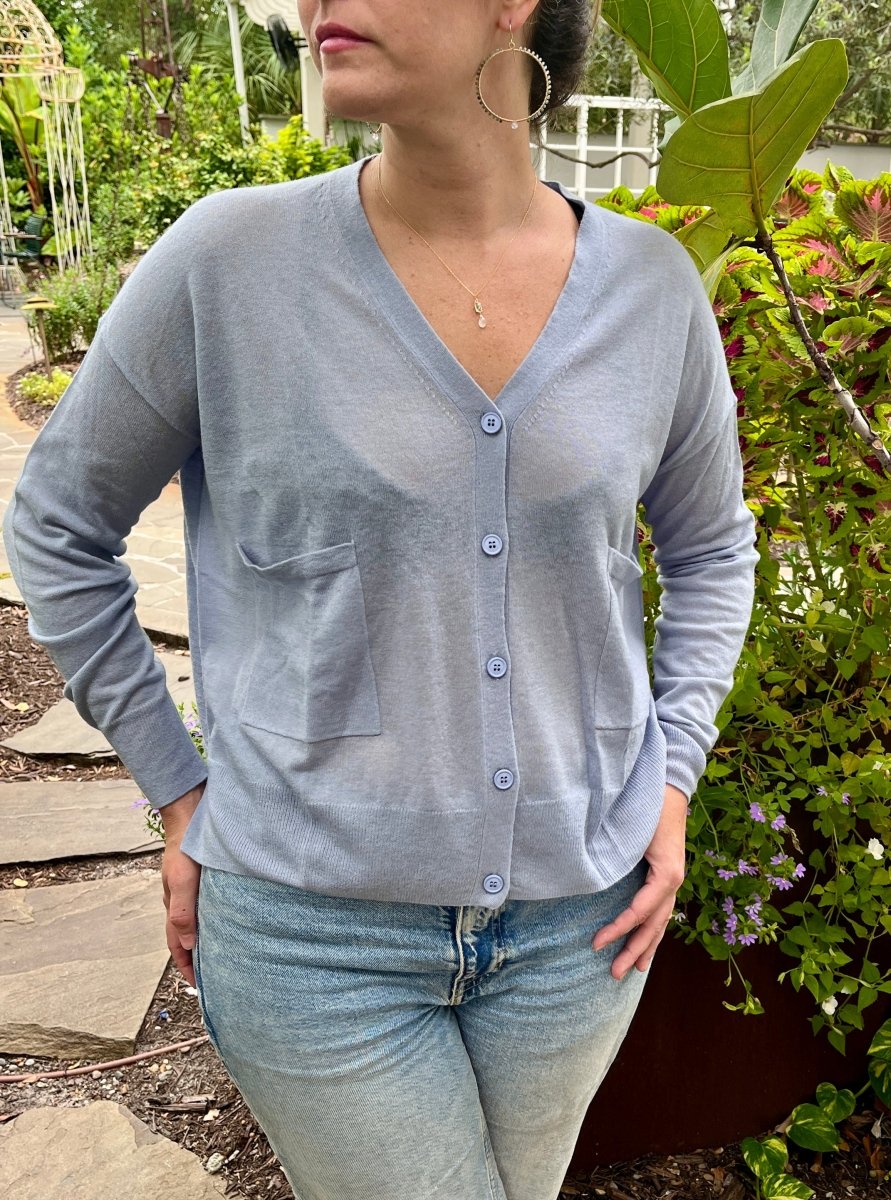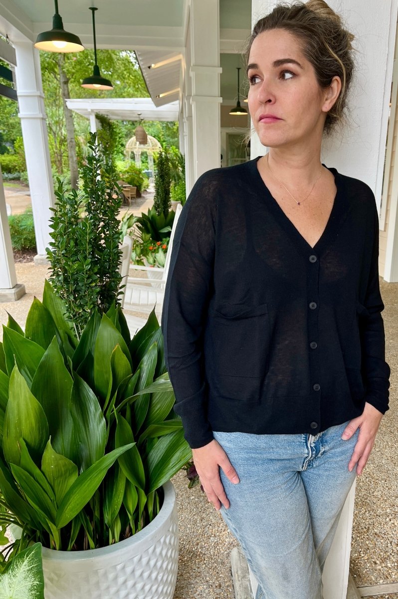 Spun from premium lightweight cashmere, this cardigan drapes with ease and softness. Its oversized silhouette and deep pockets bring a relaxed elegance, while the clean V-neckline adds timeless simplicity.