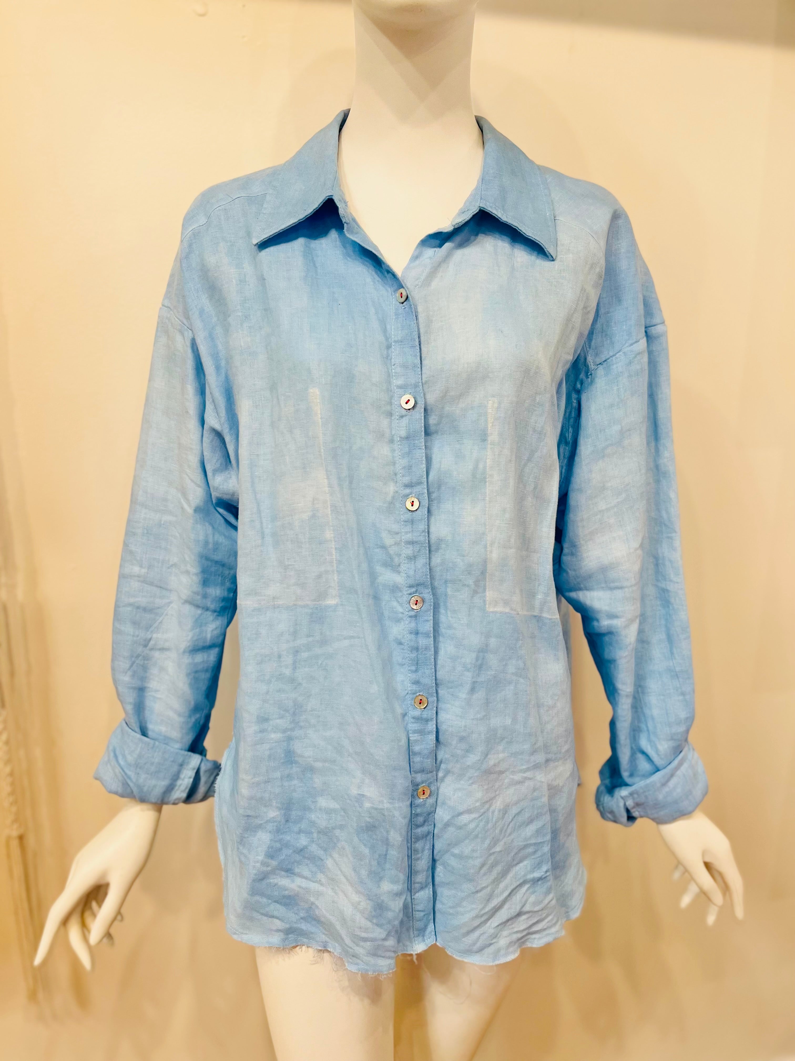 Powder Blue Linen Button Down Shirt by Giovanni Contrada