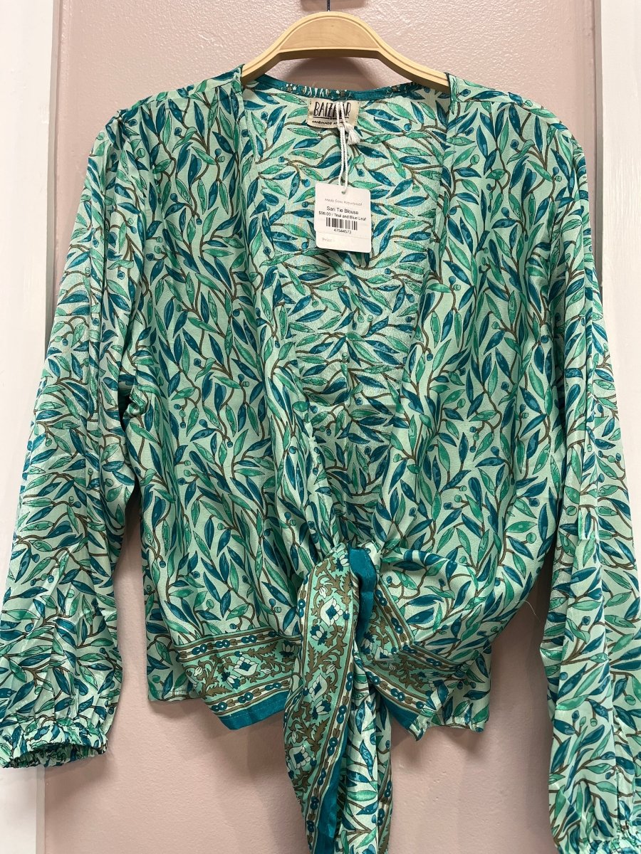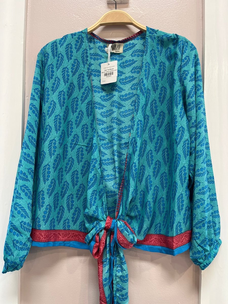 Multiple ways to wear this beautiful blouse made out of repurposed saris in a silk poly blend.