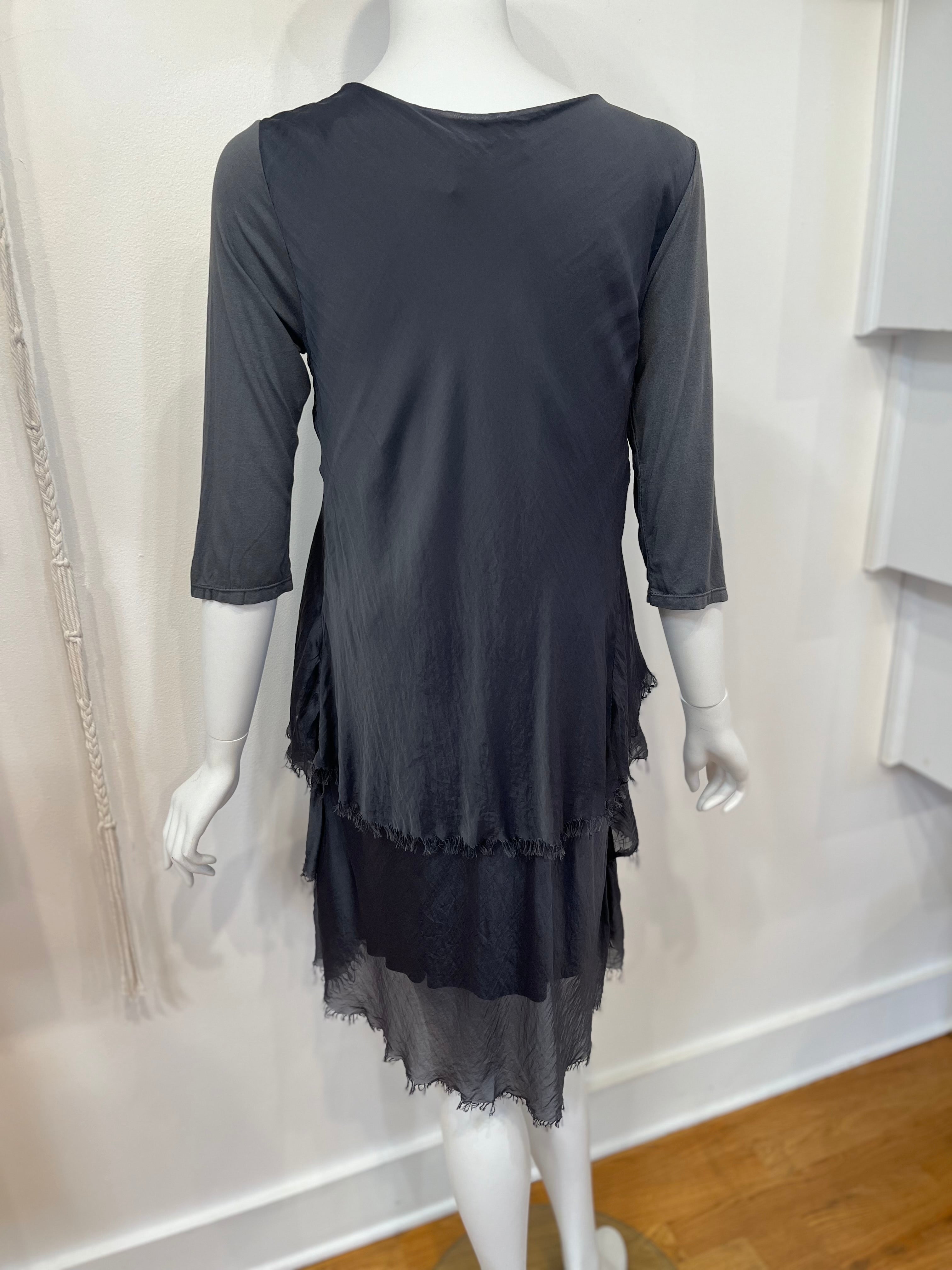 A graceful silhouette that floats with layered silk panels and a soft inner lining. This dress is designed to move beautifully, whether you’re stepping into a wedding, cocktail hour, or a dinner out. Effortless and flattering, it’s the kind of piece that transitions with you—season after season.