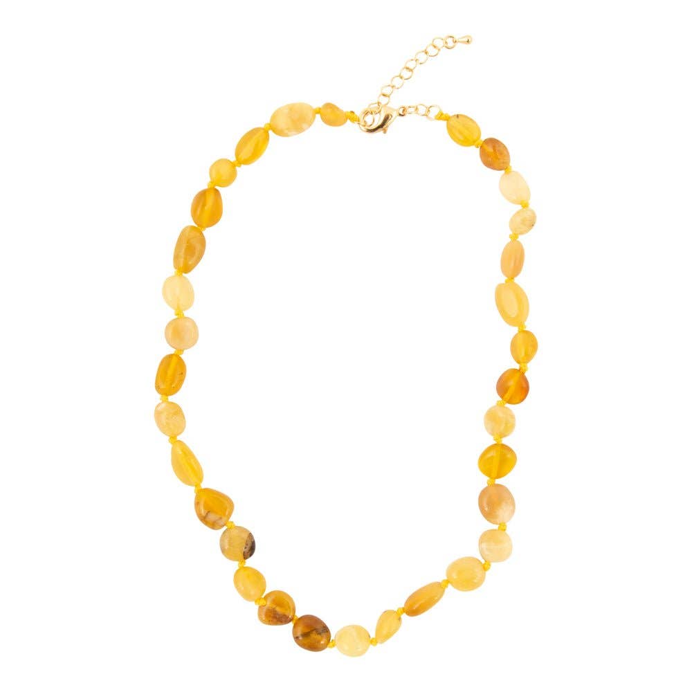 A radiant strand of sunshine captured in stone. This handcrafted necklace features genuine yellow opal nuggets, each one individually knotted for strength and fluid movement. The 17-inch design includes a 2-inch 18k gold-plated brass extender with a secure lobster clasp, allowing for an easy, adjustable fit.